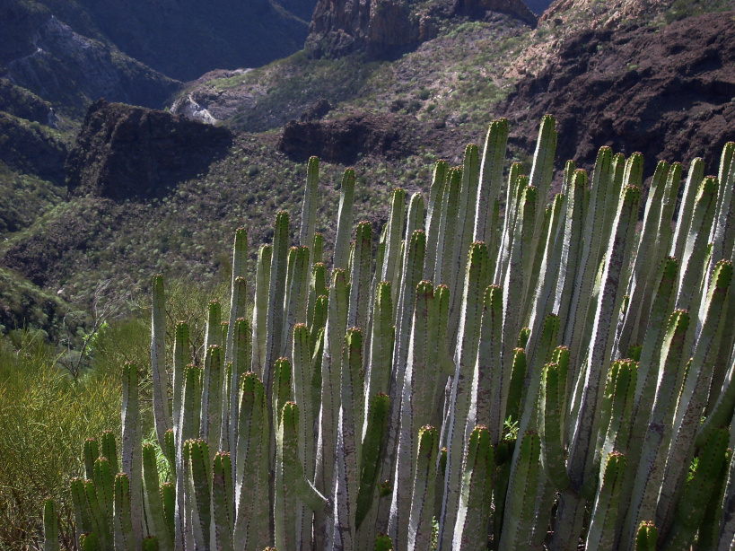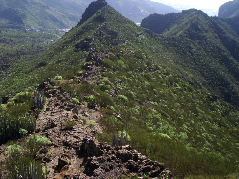 Der weitere Verlauf auf dem Grat, bzw. im westlichen Berghang, ist wieder etwas bequemer. Nach 300m kommt man zu einer Abzweigung, wo man nach links ins Tal von Santiago hinabsteigt. Geradeaus könnte man bis auf die Höhen der Felsen von Los Gigantes steigen, jedoch wird der Weg immer gefährlicher, je weiter man raus geht.