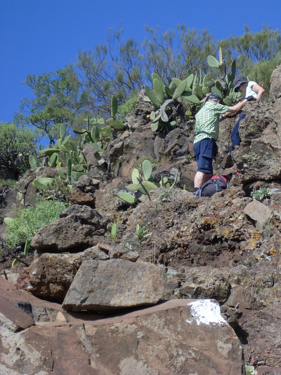 Der steile Abstiegsweg trifft unten im Tal wieder auf den PR-TF 65, auf dem man zurück nach Santiago läuft. Allerdings ist direkt unterhalb von El Molledo noch ein etwas steilerer Aufstieg zu bewältigen.
