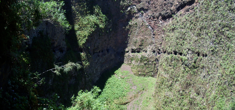 Ein anderer Kanalabschnitt in einer Schlucht und mit „Fenstern“, aber wesentlich ungefährlicher, ist bei dieser Wanderung beschrieben: Asche, Stein und Muskelkater.