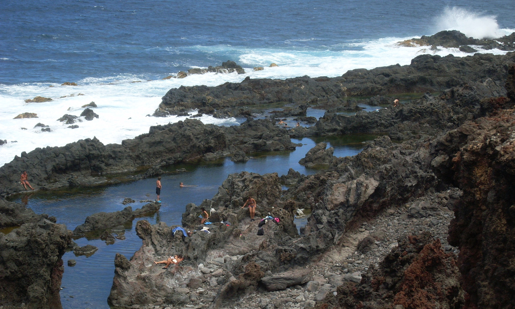 Interessant ist ein großes Brandungstor mit einem tiefen Loch dahinter. Es sieht aus wie ein Krater, ist aber vermutlich eine eingebrochene Höhle. Sie heißt „El rayo“, weil manche Leute eine Geschichte erzählen, nach der dieses Phänomen durch den Energiestrahl eines Raumschiffs von Außerirdischen entstanden sein soll.