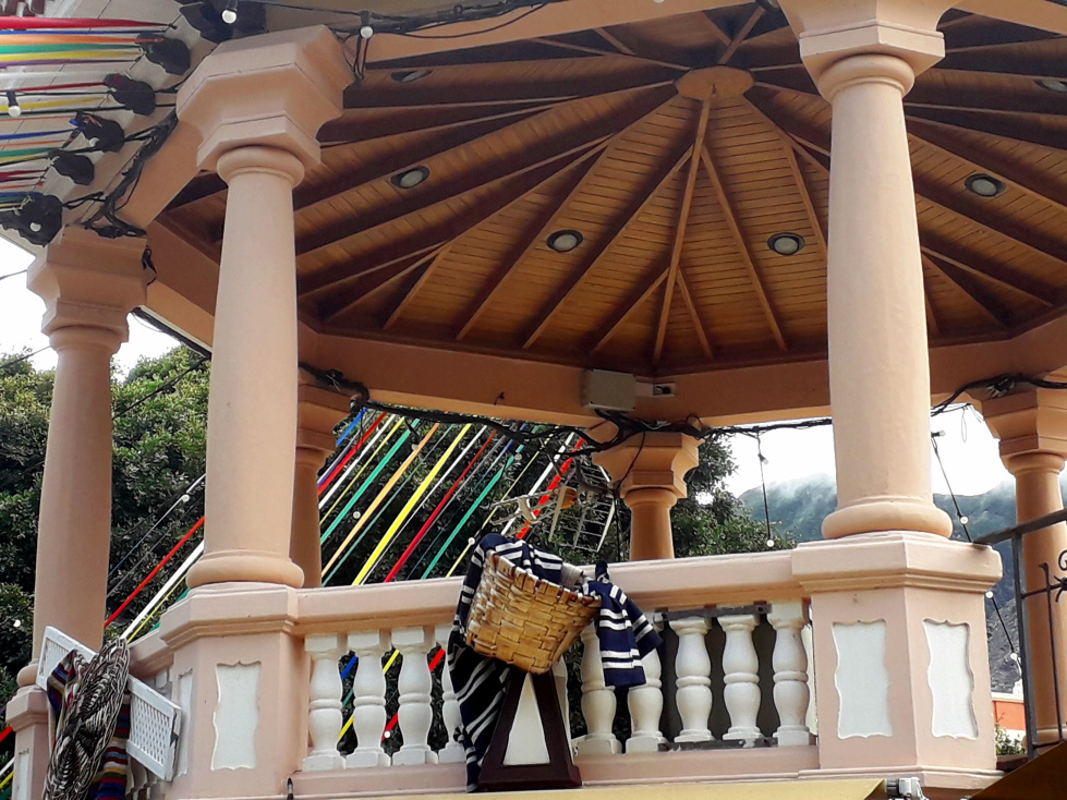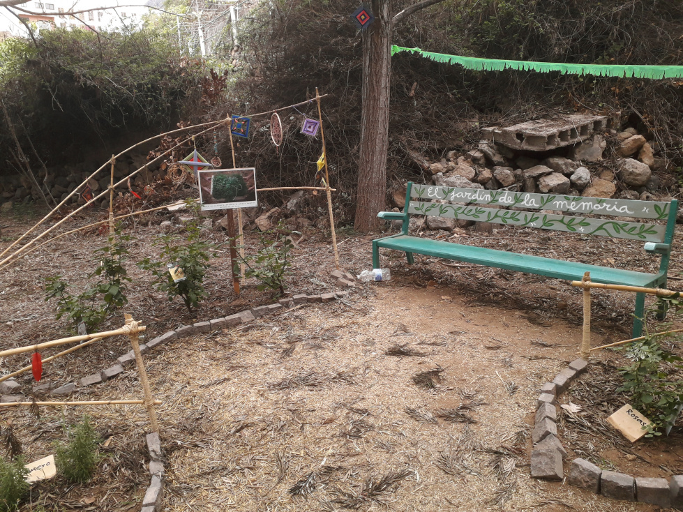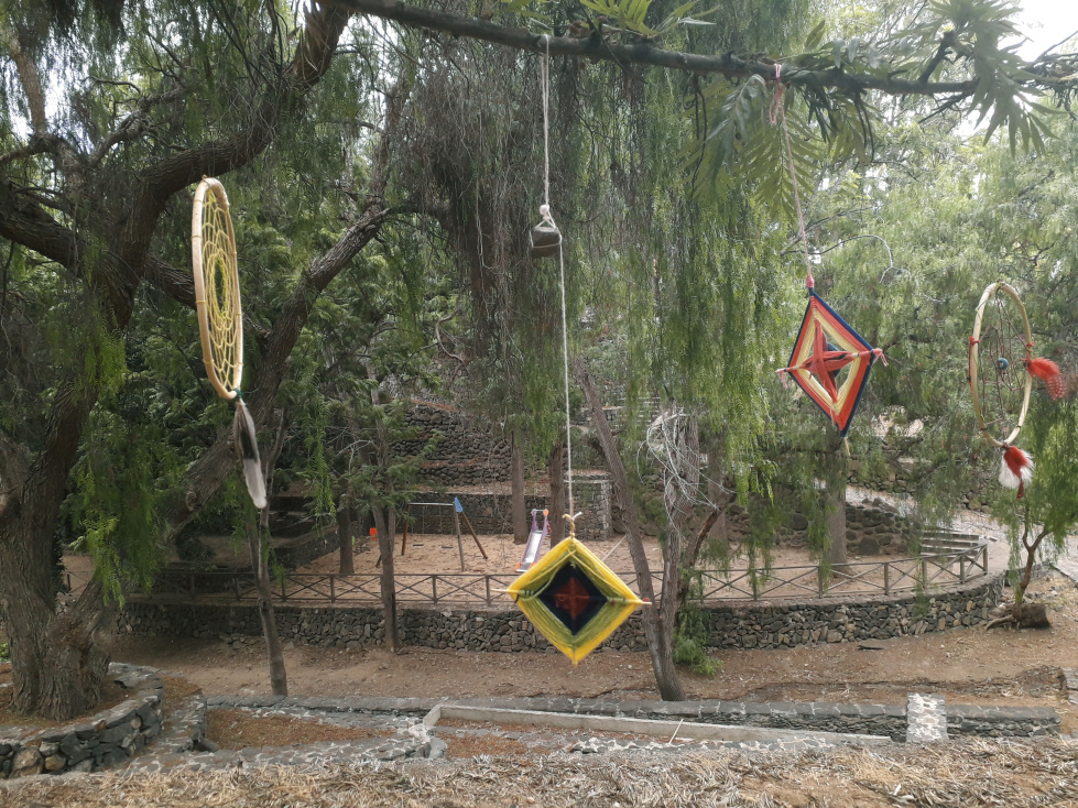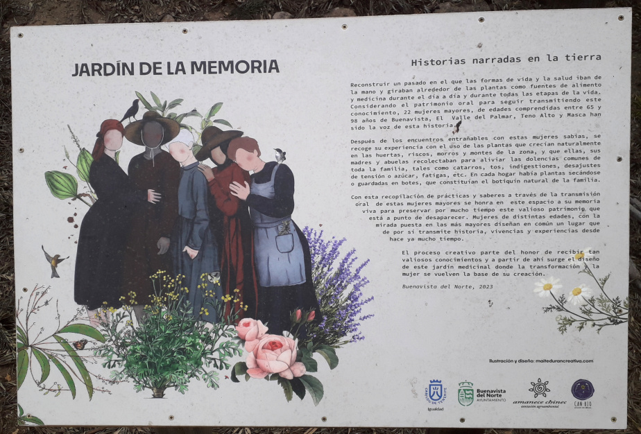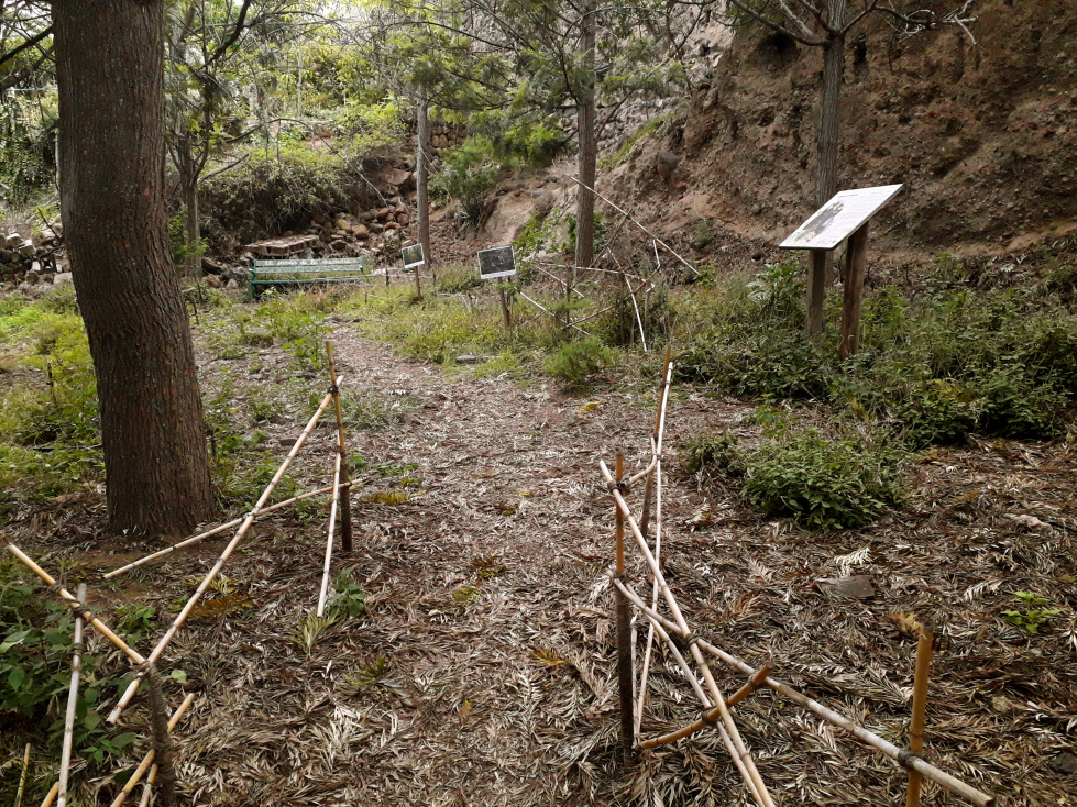 Weiter geht es dann nach links über ein paar Stufen an der Mauer des Golfplatzes entlang nach oben bis zur Kapelle „La Visitación“, danach auf der gepflasterten Straße nach links oben. Das Schild Richtung Centro histórico steht erst weiter oben. Kurz bevor man in die Altstadt hinaufsteigt, durchquert man ein kleines Tal und kommt an einem alten Waschplatz vorbei. Oberhalb wurde der „Garten der Erinnerung“ angelegt. Er erinnert an die Tradition der Frauen in den Dörfern, die früher ihre eigenen Heilkräuter angebaut haben. Die Erinnerung ist aber schon nach zwei Jahren wieder ziemlich verblasst. Der Garten wird leider nicht mehr gepflegt.