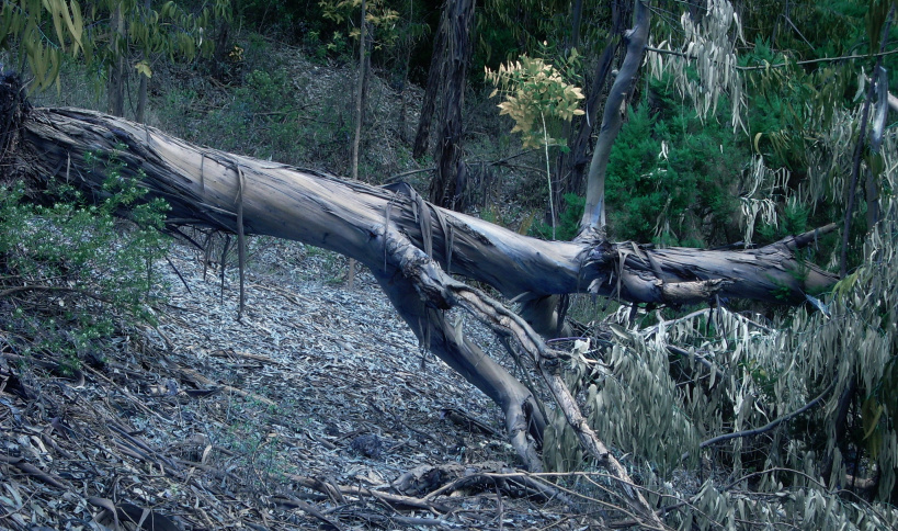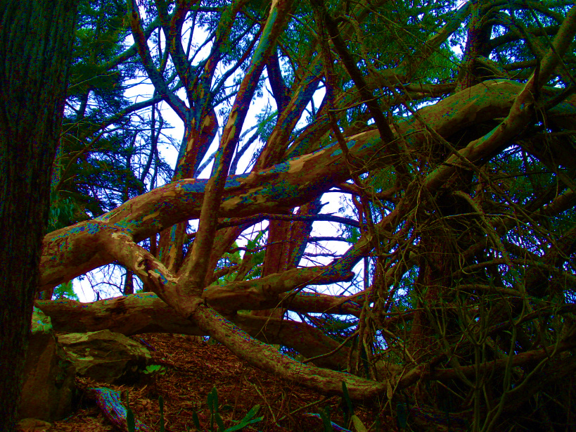 Hier oben entdeckt man eine gespenstische Szenerie von umgestürzten Baumriesen und Gestrüpp. Ein Stück weiter heißt es aufgepasst! Dort ist ein großes, rechteckiges Loch im Boden, senkrechte Felswände fallen ca. 20m tief ab. Vermutlich ein ehemaliger Steinbruch. Vielleicht aber auch der Zugang zur Unterwelt. Die Abbruchkanten sind stark verwachsen. Wer dort hinunterfällt, wird dem Teufel ein ganzes Stück näher sein!