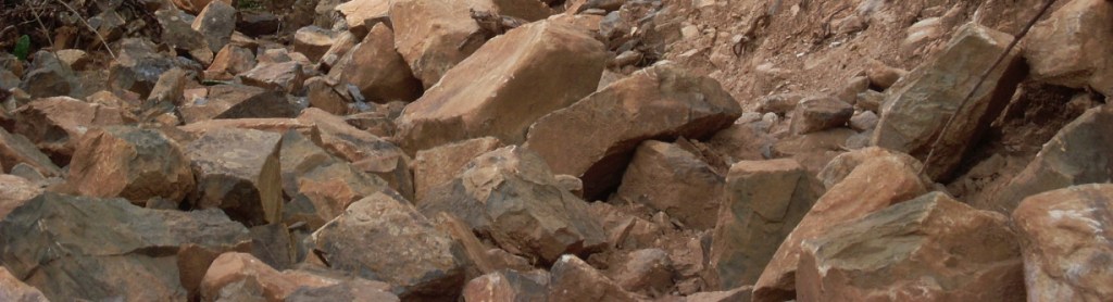 Und sofort sieht man die Reste der Mauer und die heruntergefallenen Steine. Man könnte über die Steinlawine nach oben klettern, bequemer ist es aber, den Durchgang des Teufels zu benutzen und oberhalb der Mauer weiterzugehen.