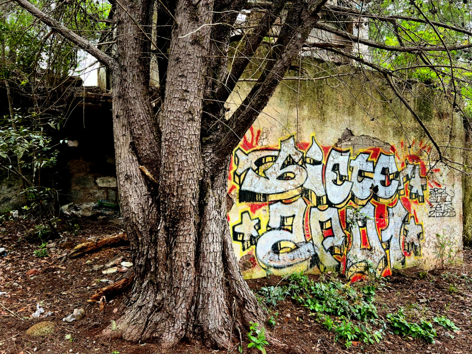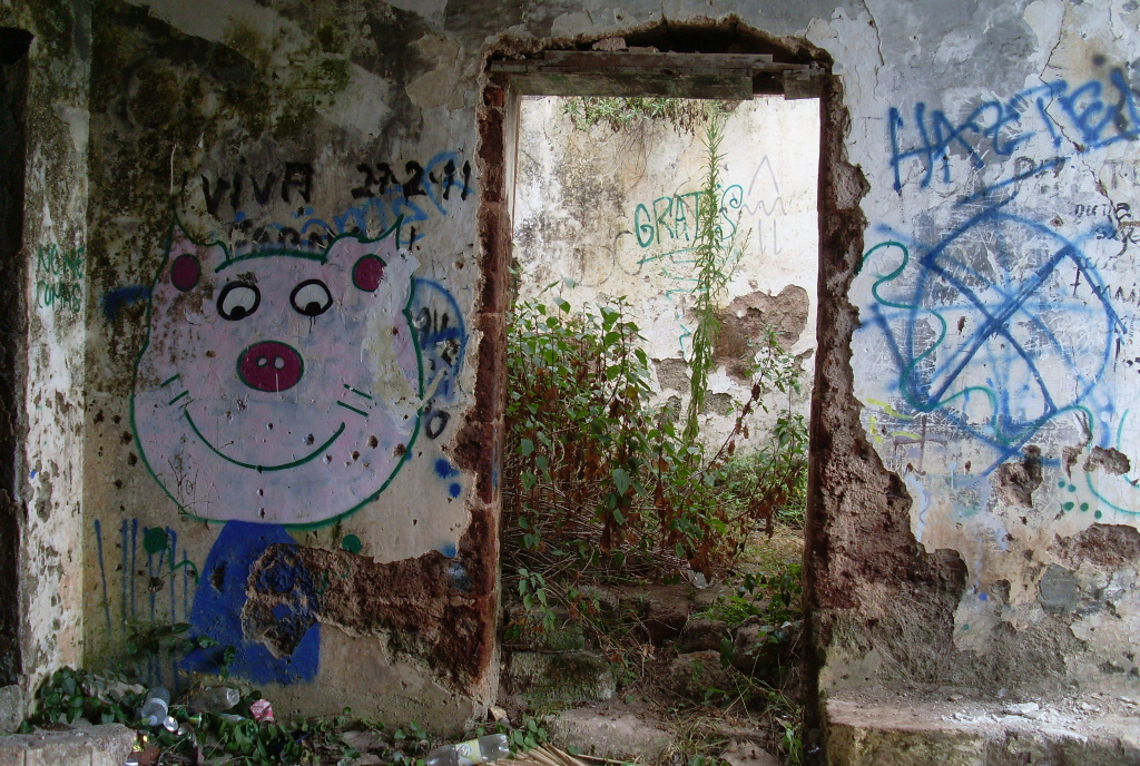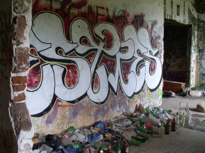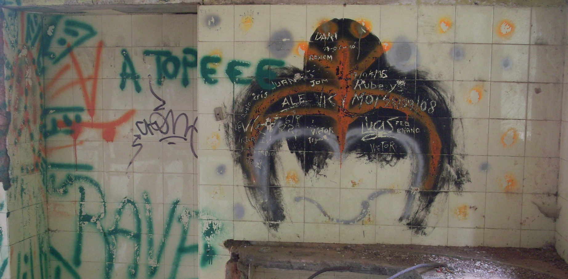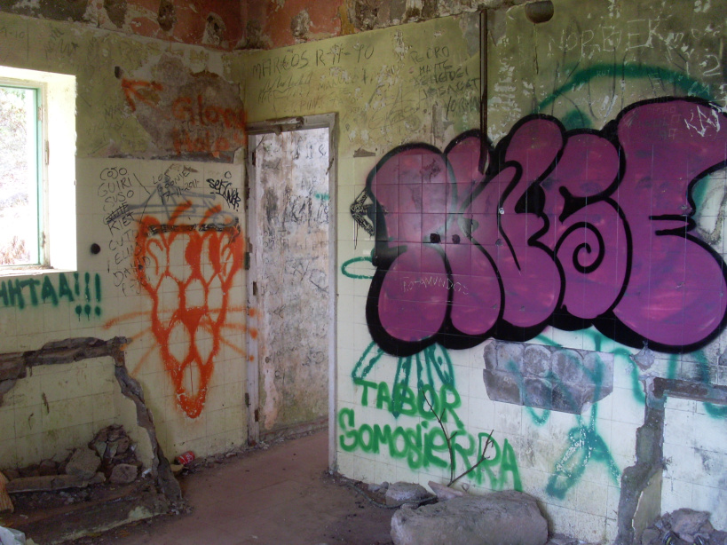 Im Inneren des Hauses entstanden allerhand Graffiti. Inzwischen ist es aber komplett zugemauert, und man kann es nicht mehr betreten.