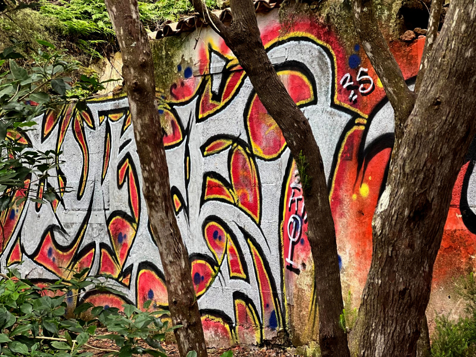 Geheimnisvolle Zeichen an den Felsen deuten darauf hin. Andere feierten einfach eine Party in der Ruine und hinterließen Berge von Müll.
