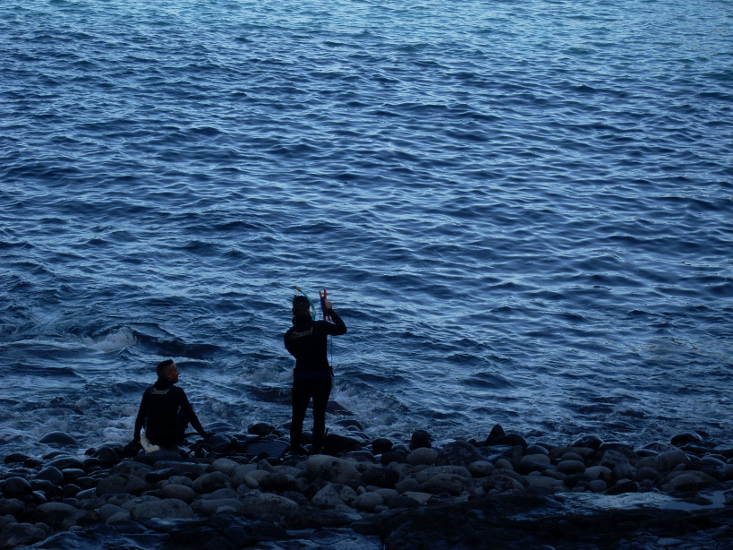 Direkt oberhalb der kurzen, steinigen Bucht befinden sich ein paar Höhlen, die offenbar als Unterschlupf für Angler, Taucher oder Liebespaare dienen. Die Bucht ist zum Baden absolut ungeeignet. Aber es wagen sich ab und zu Taucher ins Wasser.