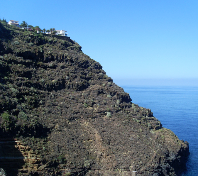 Man folgt der Straße etwa 400m, kurz nach einigen Bauruinen zweigt rechts der Wanderweg ab, der sofort in die Steilwand des Barranco hineinführt. Der Weg ist mit Treppen und Geländern gut gesichert, der Abstieg bis zum Meer ist problemlos. Man hat herrliche Ausblicke auf die vorgelagerte Felseninsel.