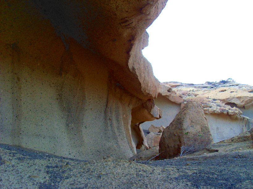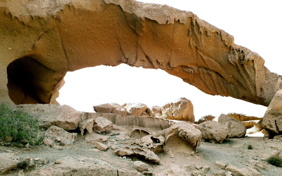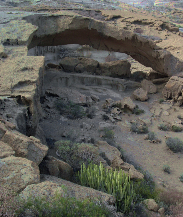 Die natürliche Steinbrücke von etwa 30m Länge und 10m Höhe ist ein Ergebnis der langen Erosion von Wind und Wasser. Hier in der Gegend von San Miguel und Granadilla fällt besonders das helle, poröse Vulkangestein auf. Es handelt sich um vulkanischen Tuff, der von mehreren pyroklastischen Strömen abgelagert wurde.