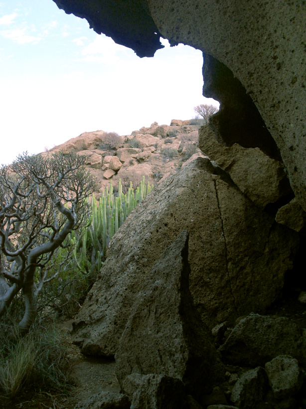 Die größte Naturbrücke Teneriffas ist aus Basalt, man kann sie im Barranco de la Linde erwandern und besteigen: Hart wie Stein. Ein anderer Basaltbogen steht beim Dorf La Puente: Ein Loch im Basalt. Ein etwas kleineres, aber nicht minder sehenswertes Felsentor befindet sich im kleinen Dorf El Varadero: Im Abseits (I). Wer Das große Loch sehen will, muss schon eine etwas anstrengendere Wanderung unternehmen.