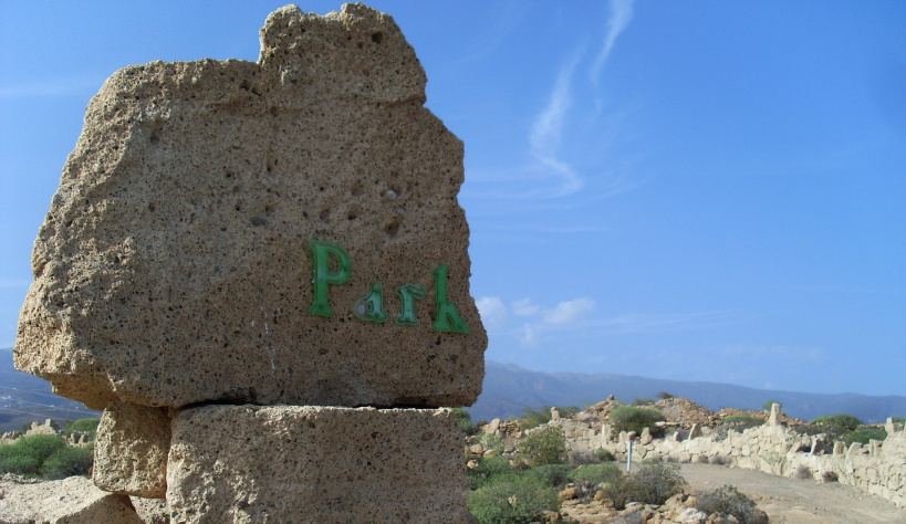 Auf einem öden Höhenrücken oberhalb des Industriegebiets von Granadilla, kaum zwei Kilometer von der Autobahn entfernt, liegt eine faszinierende Bungalowanlage, die ein kleines Paradies hätte werden können. Hätte … , denn leider findet man dort heute nur noch Ruinen. Der klangvolle Name „Natura Park“ verspricht viel, doch er wird in keinem touristischen Reisekatalog zu finden sein, und kein Reiseführer wird diese Freizeitanlage erwähnen. Besuchern, die etwas Besonderes entdecken möchten, wird der kleine, nicht anstrengende Spaziergang dort hin aber sicherlich Freude bereiten.