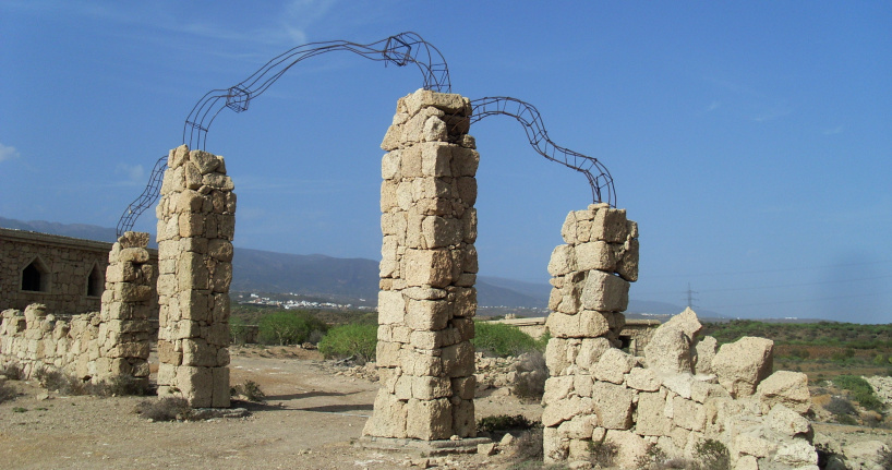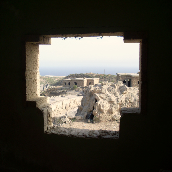 Man könnte sich durchaus vorstellen, wie hübsch das aussehen könnte, wenn alles schön bewässert und grün bepflanzt wäre, ein Café mit Sonnenschirmen, ein plätschernder Wasserfall, eine Tanzkapelle am Abend,… Aber nein, alles nur eine Fata Morgana in der ausgedörrten Wüste, weiße Mauern und kahle Felsen. Plastikflaschen und Glasscherben glitzern in der Sonne. Nur die Liebhaber von Paintball-Spielen können sich heute noch über diese herrliche, aber dem Verfall preisgegebene Kulisse freuen.