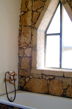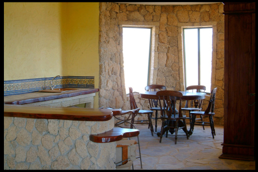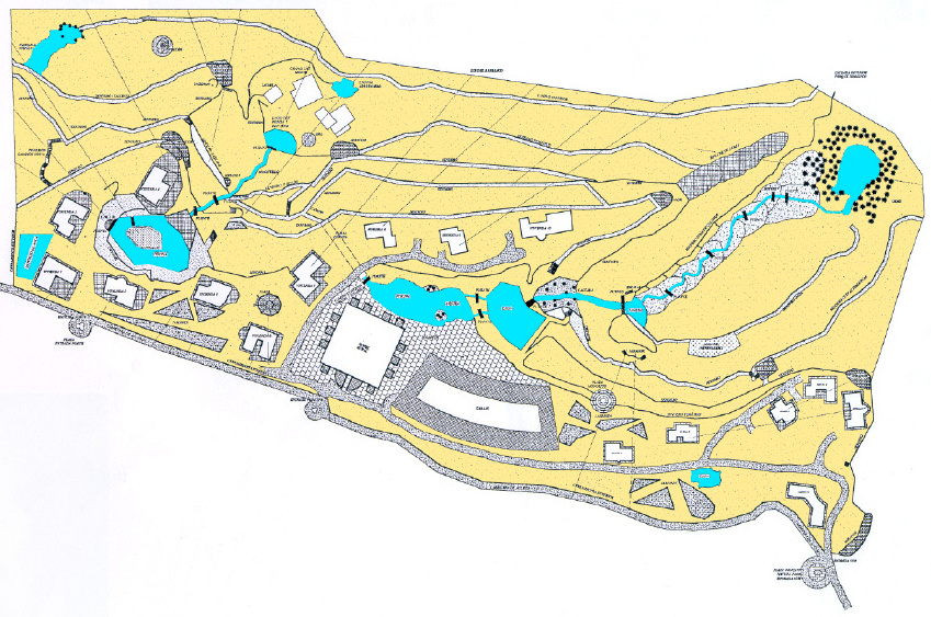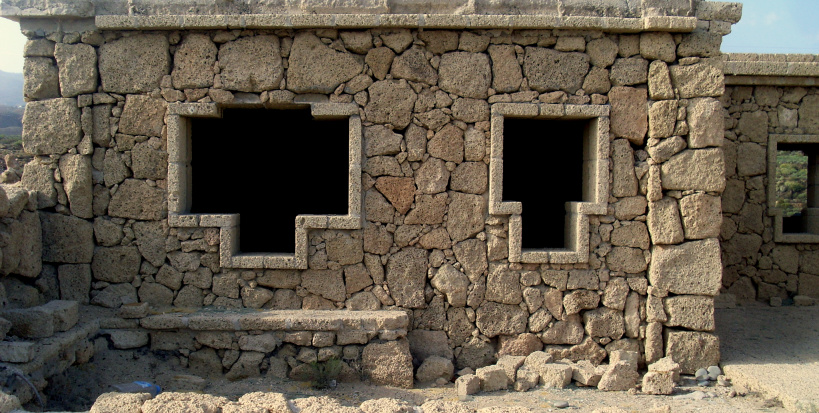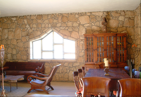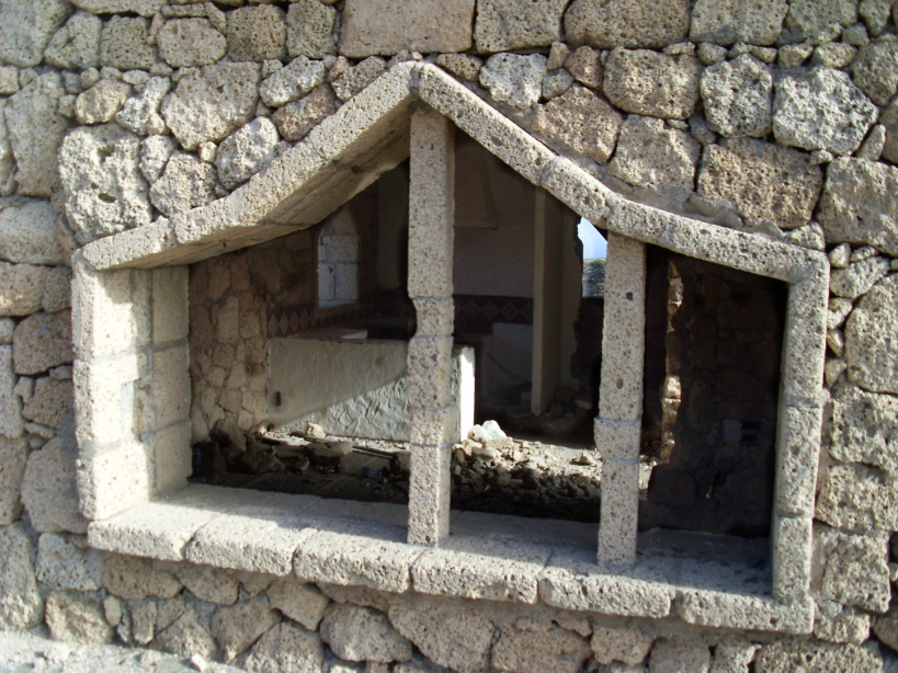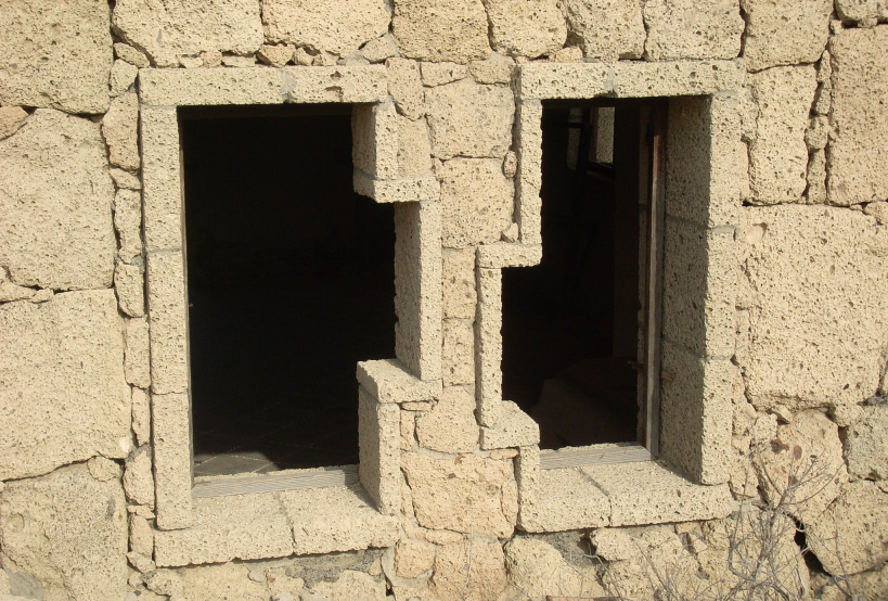 Vor dem Eingangstor befand sich einst ein steinerner Stern mit einem Baum in der Mitte, der aber längst vertrocknet ist. Die Eisenträger des Tors ragen gespenstisch zum Himmel. Die ganze Anlage besteht aus mehrere Häuschen, die erstaunlich detailreich aus dem hellen Tuffgestein erbaut wurden. Besonders auffallend ist schon auf den ersten Blick, dass sich jedes Haus durch eine andere Form der Fenster auszeichnet. War hier etwa ein Künstler am Werk? Am Abhang zum Barranco war offenbar auch eine Poolanlage geplant, mit mehreren Terrassen, Steinmosaiken und Aussichtswegen.