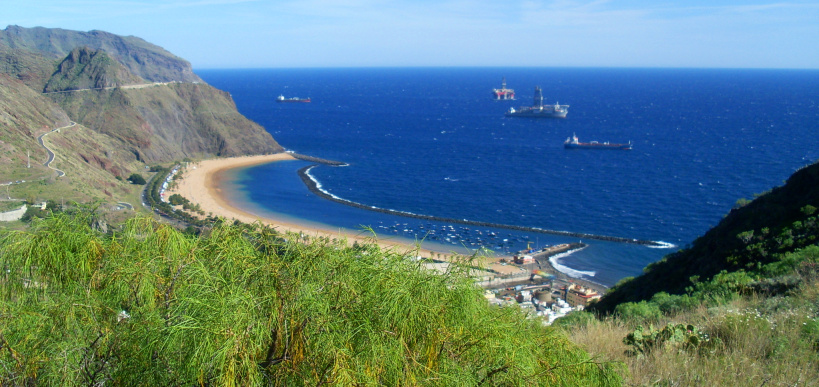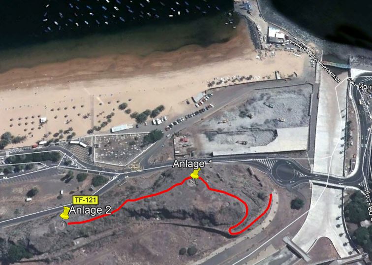 Schon beim Aufstieg hat man ein herrliches Panorama über den Ort San Andrés und den Strand von Las Teresitas. Der Weg ist leicht zu finden und bequem zu laufen, in mehreren Kurven steigt man gemächlich hinauf zum Sattel. Dort oben geht der Blick dann in die andere Richtung, über den Hafen und die Stadt Santa Cruz. Weit in der Ferne steht der Teide.