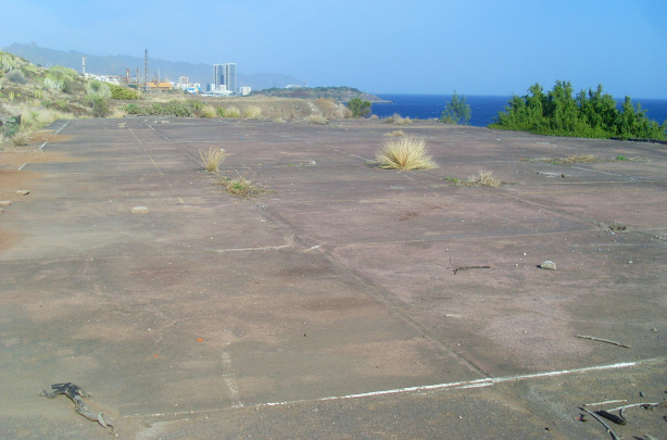 Etwas oberhalb findet man die betonierte Grundfläche eines größeren Gebäudes. Geht man noch ein Stück weiter, kann man die Aussicht auf die Ölraffinerie von Santa Cruz genießen. Die Küste selbst ist unzugänglich.