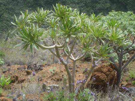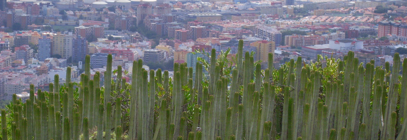 Auch aus biologischer Sicht ist dieser Berg etwas Besonderes. Er liegt im Regenschatten der letzten Ausläufer des Anaga-Gebirges und deshalb ist es hier viel trockener als beispielsweise im nur wenige Kilometer entfernten Tal von La Jardina oder in La Laguna. Dies ist der Grund dafür, warum man an den Hängen der Montaña der Guerra die typischen Pflanzen der Trockenzonen findet, die sonst nur in viel tieferen Lagen wachsen: den Cardonal (Kandelaberkaktus), den Artemisio (kanarischer Beifuß oder Wermut) und den Tabaiba (ein Wolfsmilchgewächs). Achtung: Bricht man einen Ast des Tabaiba ab, so tritt ein weißer Saft aus, dieser ist giftig! Diese Vegetationsgemeinschaft wird als Cardonal-Tabaibal bezeichnet. Lies mehr über diese Überlebenskünstler.