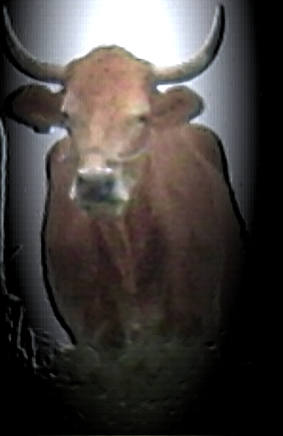 Etwa 50m weiter an der Straße sieht man rechts einen durch eine Eisenkette abgesperrten Feldweg, in den man abbiegt. Achtung: Hinter der Kette ist noch ein elektrischer Weidezaun, den Grund dafür sieht man etwas später.