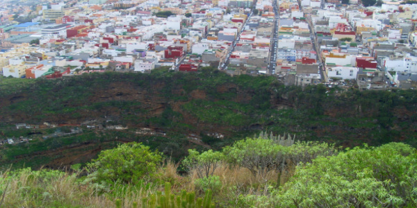 Am Rande der Altstadt von La Laguna befindet sich der bekannte Platz des Adelantado, ganz in der Nähe ein großer Parkplatz. Dort, wo von diesem Parkplatz aus die Einfahrt auf die vierspurige TF-13 führt, erkennt man rechts unten ein kleines Tal, das hier beginnt. Das ist die erste Stelle, wo die große Schlucht dem Betrachter augenfällig wird. Die anderen kleinen Wasserläufe, die in dieses Tal entwässern, verlaufen in der Stadt unterirdisch.