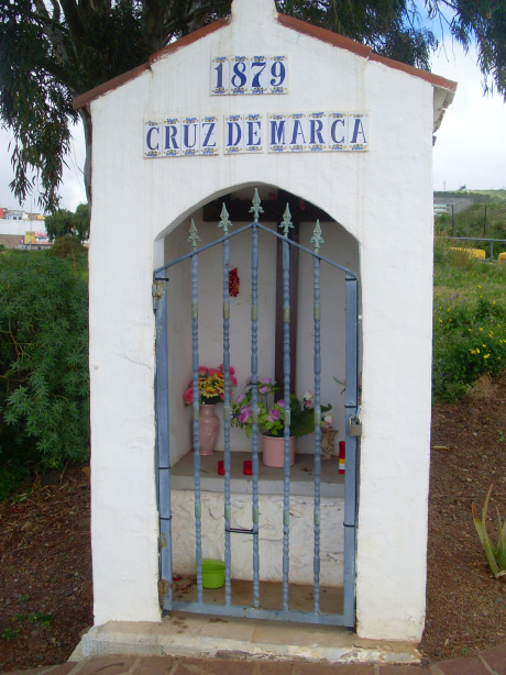 Gegenüber befindet sich eine wichtige Landmarke: Die Cruz de Marca. Dieses Kreuz, wie sein Name sagt, markiert einen bestimmten Punkt. Welchen, darüber gibt es gleich drei Geschichten:
