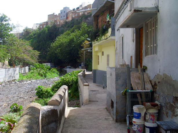 Einige Häuser sind an den Rand des Tals geklebt, wild und ungeplant, die Zufahrt zu diesen ist schwierig zu finden. Von dort aus macht das Tal einen leichten Bogen Richtung Osten. Zwischen dem Tal und der TF-13 liegt ein größerer Gebäudekomplex, in dem sich das Diözesan-Seminar Teneriffas und das höhere Institut für Theologie der Kanaren befinden. Danach verschwindet der Bachlauf kurz vor dem Stadtteil La Verdellana unter der vierspurigen Straße, zu deren Bau das Tal aufgeschüttet wurde.