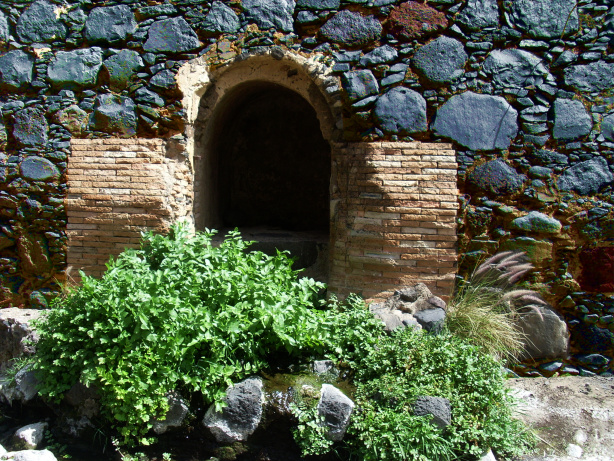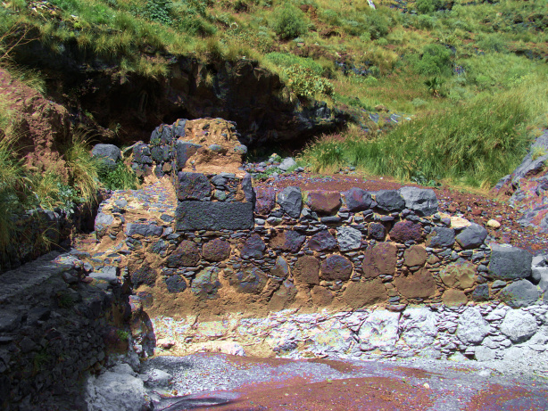 An mehreren Stellen befinden sich hier alte Staumauern, an denen früher das Wasser zu Mühlen, Waschplätzen oder zur Bewässerung abgeleitet wurde. Diese mächtigen Mauern sind 4-5m hoch und mehr als 2m dick, unterhalb davon erkennt man noch alte Kanäle.