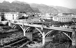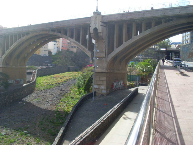 Diese ist die zweitälteste Brücke über den Barranco. Sie wurde schon 1754 erbaut und ermöglichte erst den Ausbau der Landstraße von Santa Cruz nach La Laguna. Bis dahin musste man über wacklige, gefährliche Holzstege klettern, eine Überquerung der Schlucht mit Fuhrwerken war unmöglich. Die imposante Steinkonstruktion ist bis heute erhalten, sie wurde aber modernisiert und verbreitert, als man im Jahr 2007 die Straßenbahnlinie darüber führte. Eine Haltestelle befindet sich direkt auf der Brücke. In diesem Video bekommt man einen Eindruck, wie gefährlich die Wassermassen sein können, die gelegentlich den Barranco herunterkommen, das Wasser kann schon auch mal über die Brücke fließen: