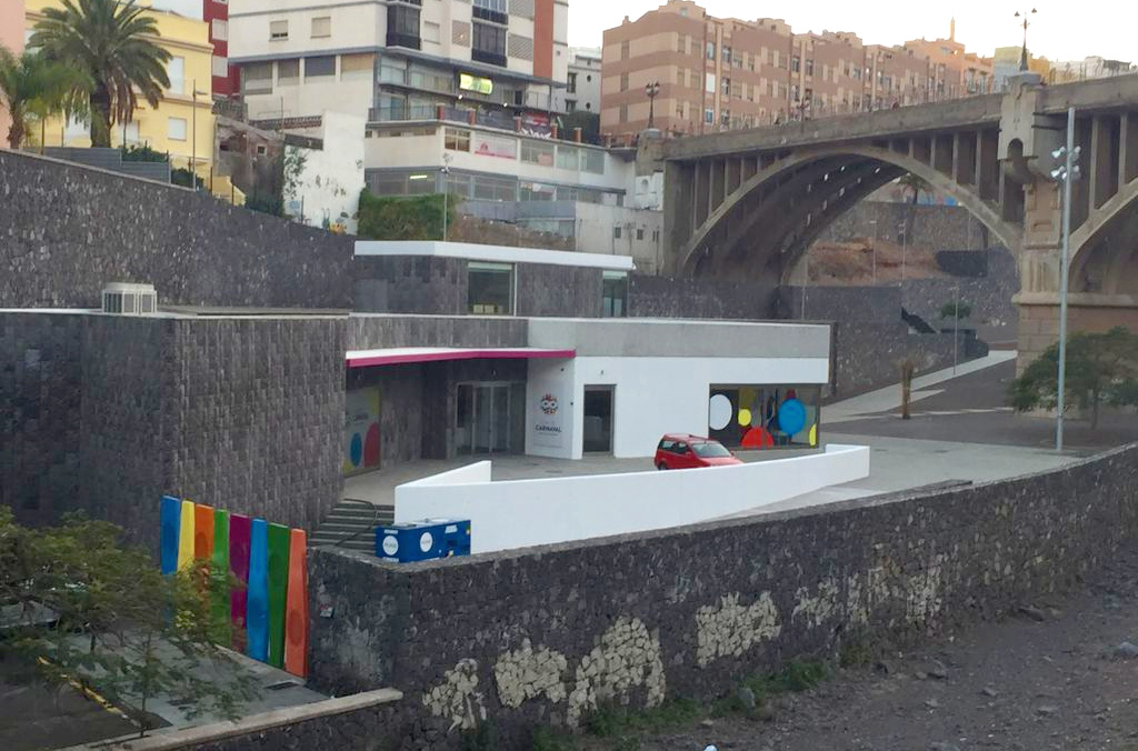 Auf den Terrassen links und rechts des Flussbetts gab es bis vor 50 Jahren noch Bananenplantagen. Jetzt befindet sich unterhalb der Brücke die am 28.6.17 eröffnete Casa de Carnaval. Das von außen recht unscheinbare Gebäude bietet innen eine bunte Dauerausstellung zum Karneval von Santa Cruz und verfügt über Räume für Veranstaltungen. Auf den Terrassen links und rechts des Flussbetts gab es bis vor 50 Jahren noch Bananenplantagen.