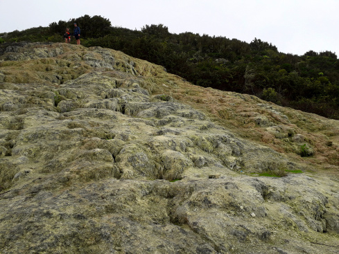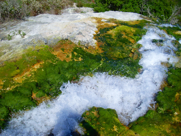 Rechts des ehemaligen Wasserfalls steigt man ein Stück weiter hinunter und bewundert dort die feinen Kalktuffe. Hier ist Vorsicht angesagt! Man sollte nicht über die empfindlichen Kalksintergebilde gehen, denn man würde sie zerstören.