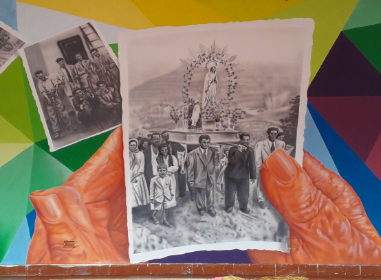Oben an der Straße hält man sich zweimal links und findet leicht den Weg bis zur Dorfkirche, die der Señora de Lourdes gewidmet ist. Dahinter ist die Dorfschule, und auf der kleinen Bühne erinnert ein Wandgemälde an die alten Traditionen des Dorfes.