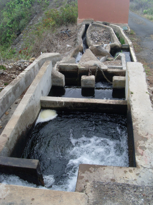 Nach weiteren 500m verlässt der Pfad kurz den Kanal nach rechts, um dann 200m weiter in die Straße zu münden, die von San Juan heraufkommt. Nun ist man schon bei der „Hidro“. Das ist ein altes Wasserkraftwerk. Hier ist ein perfekter Platz für eine Rast, nach dem doch recht anstrengenden Aufstieg.
