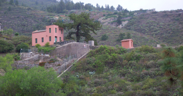 Direkt an der Bar „El chiringuito de San Juan“ beginnt der steil ansteigende Camino Los Hurones, ein asfaltiertes Sträßchen, das schnell aus dem Dorf heraus führt. Es endet nach Schweiß treibenden 500m am Wasserhaus „Los Hurones“. Hier beginnt die Spurensuche, denn der Pfad ist stellenweise recht verwachsen, folgt aber mehr oder weniger immer einer Wasserleitung, zuerst als Rohr, später dann als offener Kanal. Der Weg ist markiert als Ruta del Agua, er gehört aber nicht zum offiziellen Wanderwegenetz der Insel. Auch wenn man sich öfters durch hohes Gebüsch plagen muss, es geht immer geradewegs nach oben. Ein deutlicher Orientierungspunkt sind zwei rot gestrichenen Wasserhäuschen.