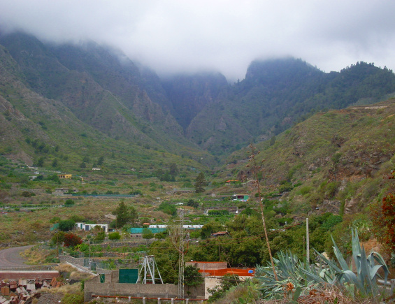 Unterwegs wird man zwangsläufig öfters mal eine Verschnaufpause einlegen. Dann lohnt sich ein Blick zurück. Denn von hier oben überblickt man das gesamte Tal von Güímar. Nach Norden geht der Blick bis nach Candelaria, noch weiter in der Ferne erkennt man Santa Cruz. Am Horizont über dem Meer erheben sich die Berge von Gran Canaria. Das Tal von Güímar ist durch einen gigantischen Bergrutsch entstanden, dessen südliche Flanke man gut erkennen kann. Die TF-28 schlängelt sich hinauf zum Mirador Don Martín. Dort klebt wie ein Adlerhorst am Felsen das alte Hotel, das 1967 im beginnenden Tourismus-Boom eröffnet wurde, aber bereits im nächsten Jahrzehnt wieder geschlossen wurde und seither verrottet.