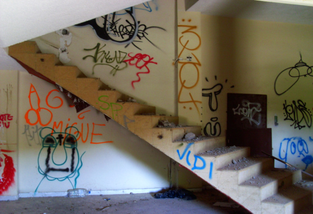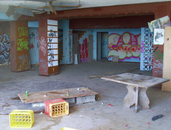 Und so begann der langsame Zerfall des einstigen Luxushotels. Scheiben wurden eingeschlagen, Plünderer räumten die gesamte Kücheneinrichtung aus und alles was sonst noch von Wert war, Saufgelage waren an der Tagesordnung. Die Nachbarn beschwerten sich über Lärm und Belästigungen. Eines Tages brach im vierten Stock ein Feuer aus.