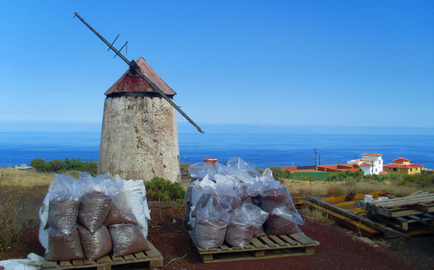 Auf dem Lagerplatz einer Baustoffhandlung vermutet man weder ein Objekt von kulturellem Interesse noch einen historischen Ort. Doch zwischen verrosteten Containern und mobilen Toilettenhäuschen steht eine der am besten erhaltenen Windmühlen Teneriffas.