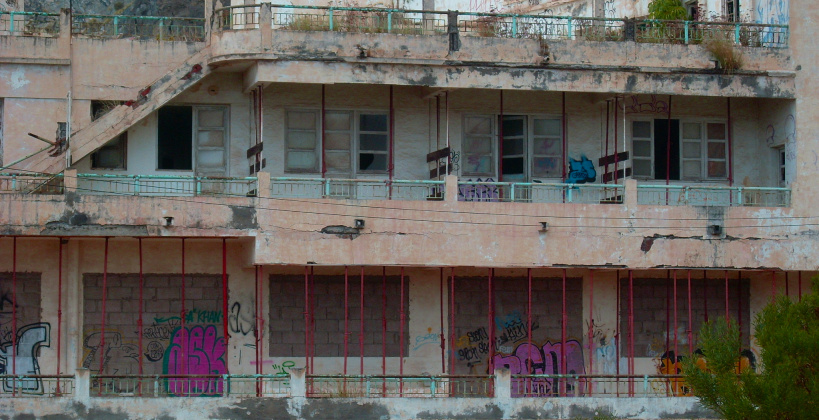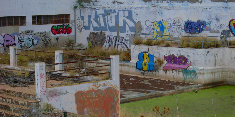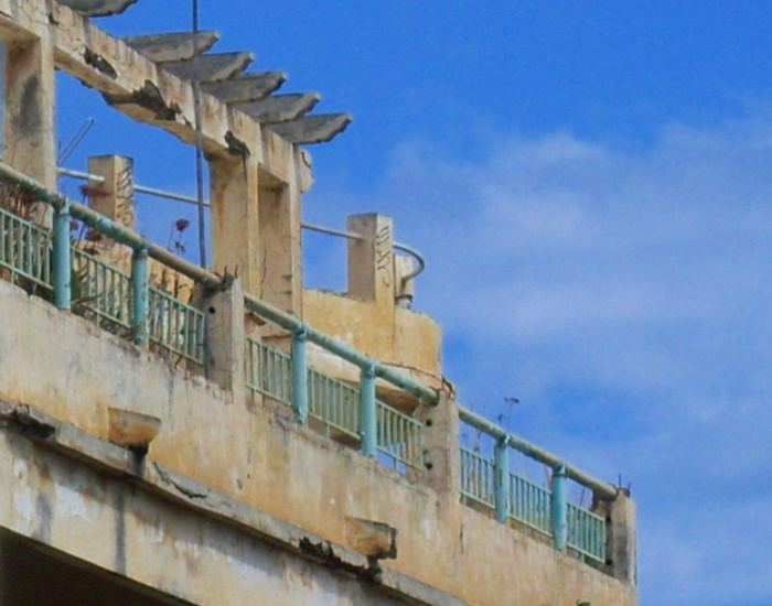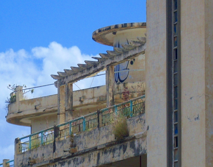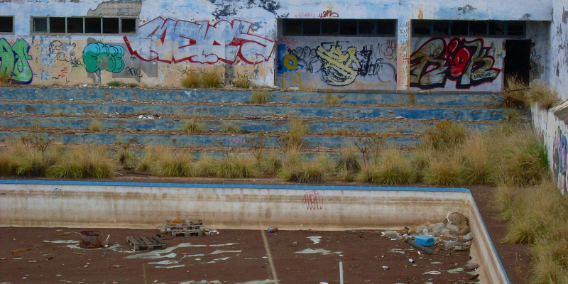 Zwischen riesigen Öltanks, der vierspurigen Stadtautobahn und den Containern, gleich neben einer Tankstelle, verrottet das ehemals so beliebte Badezentrum. Die Ruine ist zugemauert und eingezäunt, Fenster sind zerschlagen und Pfeiler zerbrochen. Wo früher Liegestühle standen und Blumenbeete angelegt waren, wuchert nur noch Unkraut. Die gesamte Anlage ist einsturzgefährdet.