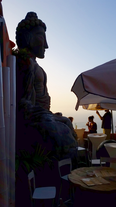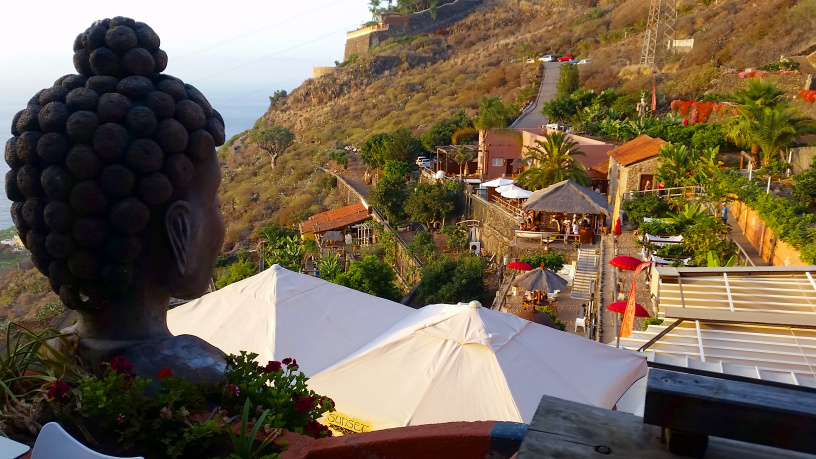 Beim Chillen unter den Augen des Buddha kann man das Kabel aber durchaus in Kauf nehmen und die schönen Abendstimmungen genießen. Selbst wenn die dicke Passatwolke über dem Orotavatal hängt, kann ein plötzlicher Sonnenuntergang ganz überraschend vorkommen, wenn die Sonne unter die Wolke taucht und für wenige Minuten die Berghänge mit goldgelbem Licht überflutet, bevor sie im Meer versinkt.