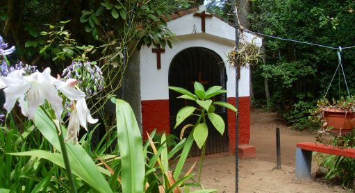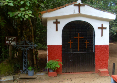 An einem weiteren Fahrweg sieht man die Beschilderung Las Lagunetas 0,7km, man geht aber in entgegengesetzter scharf links Richtung Richtung La Esperanza, nach 100m hält man sich leicht links. Dieser Weg führt direkt zu der hübschen kleinen Kapelle Cruz de Fune. Hier ist ein perfekter Platz für ein schattiges Päuschen. (Wer möchte, kann auch die 0,7km zum Picknickplatz von Las Lagunetas gehen und wieder zurückkommen.)