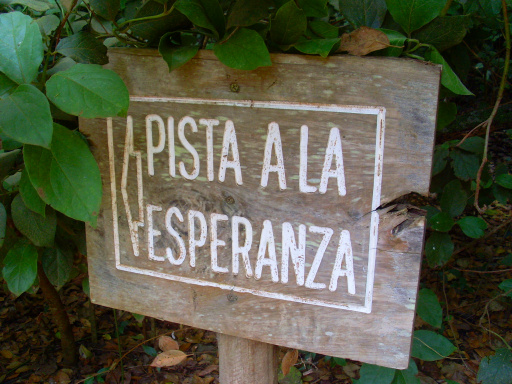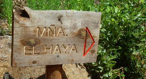 Es gibt jetzt zwei Möglichkeiten: 1. direkt auf der Pista La Hornaca zum Wasserdepot. Diese Abkürzung spart etwa 2km. 2. Weiter auf der Pista La Esperanza. Man lässt jedoch zwei Abzweigungen nach rechts Richtung La Esperanza unbeachtet und geht immer geradeaus weiter, bis man zum Schild „Montaña El Haya“ kommt. Dort wurde der Wald etwas ausgelichtet. Der bergab führende Weg, nun etwas sonniger, macht alsbald eine scharfe Linkskurve und steigt abwärts zum Wasserdepot La Hornaca. Von links stößt die beschriebene Abkürzung vom Cruz de Fune wieder auf diesen Weg.