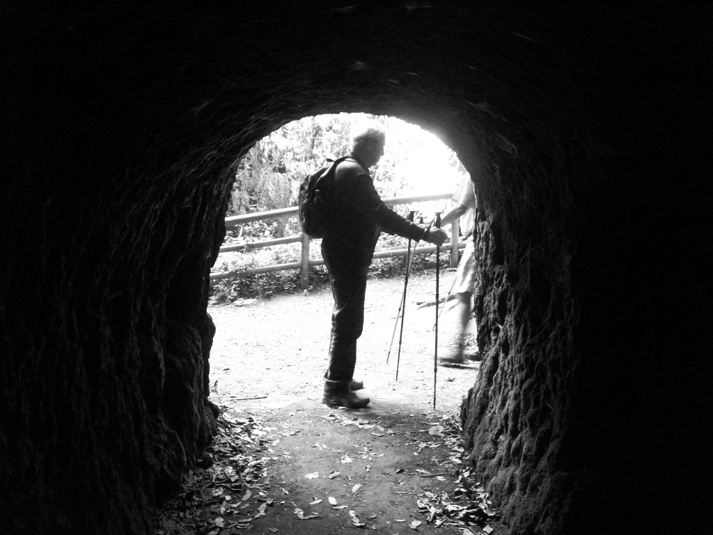Zu den Cuevas de Toledo gibt es nun zwei Möglichkeiten. Erstens wie in der kurzen Variante beschrieben, also wieder ein Stück zurück durch das Tälchen. Zweitens auf der „Straßenseite“ des Picknickplatzes, gegenüber der Wanderschilder auf dem bezeichneten Wanderweg. Allerdings bleibt man auf dem breiten Fahrweg, der nach 600m auf die Stelle (*1) trifft, wo man beim Herweg heraufgekommen ist, und dort eine scharfe Kurve nach rechts macht. Nach weitere 600m kommt man zu den Höhlen, muss aber kurz zum Brückchen hinaufsteigen, um die Höhlen und die alten Viñátigos zu besichtigen. Der Rest des Weges geht ins Tal hinunter bis zur Casa Forestal.