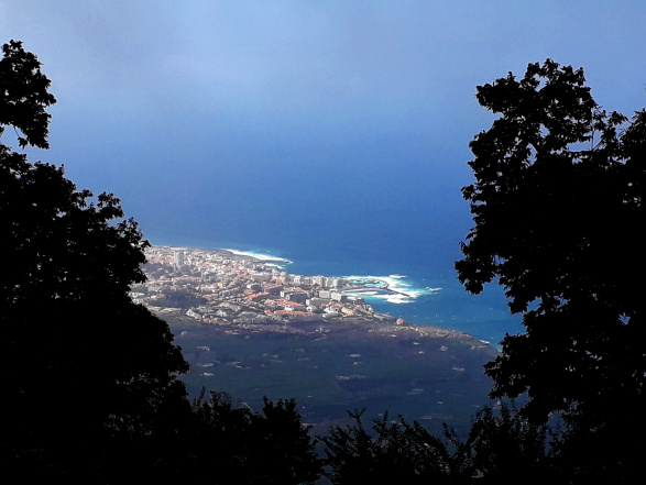 Man folgt dem Camino la Candelaria abwärts. Das schmale Sträßchen führt zunächst in den Barranco la Rosa hinein und windet sich dann am Steilhang abwärts nach Pino Alto. Hier gibt es tolle Ausblick ins Orotavatal. Aber immer vorher anhalten! Der „Balcon de Pino Alto“ ist ein perfekter Aussichtsplatz, 260m höher als der allseits bekannte „Humboldt-Blick“. Vom Balkon fährt man links weiter auf einer schmalen Straße, die keine Einbahnstraße ist (!), hinunter nach La Orotava.