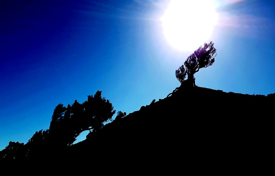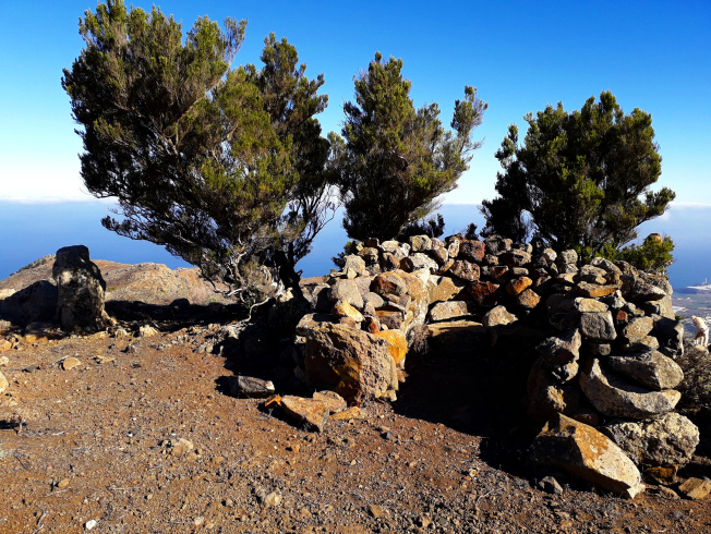 Einen klaren Tag sollte man schon erwischen, wenn man auf Farbensuche gehen will. Leider hängt all zu oft eine dicke Wolkenschicht über den ausgesetzten Höhenzügen des Teno, und starker Wind treibt die Nebelfetzen über kahle Hänge. Die Bäume ducken sich und nehmen bizarre Formen an. Ziegenhirten haben viele kleine Wälle und Mauern aus Steinen errichtet oder Höhlen in den Fels geschlagen, um sich vor Regen und Sturm zu schützen. Hier oben wechselt das Wetter oft innerhalb von Minuten.