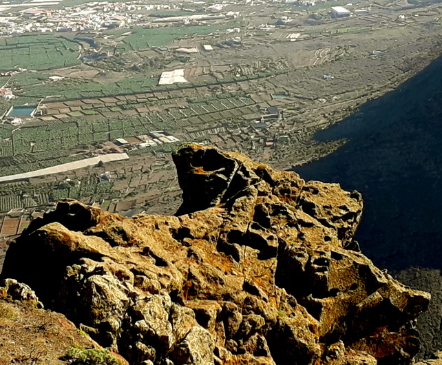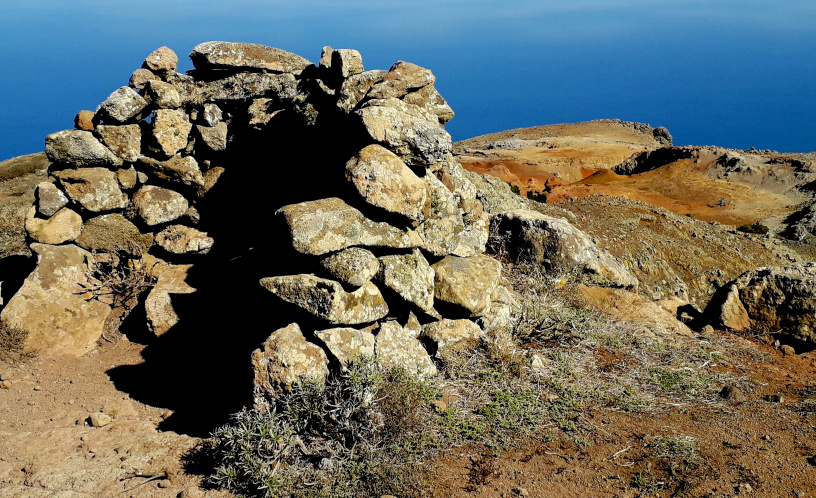 Der runde, mit Steinen eingefasst Dreschplatz eignet sich gut für eine kleine Rast. Auf dem gegenüberliegenden Hang ist der ansteigende Pfad dann gut zu erkennen. Vorher sollte man aber noch etwa 10m zu einem Aussichtspunkt gehen, wo man nach Buenavista hinunter schauen kann. Hier ist auch der Einstieg in den berühmten „Risco-Steig“, der allerdings für Normalwanderer nicht zu empfehlen ist.
