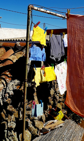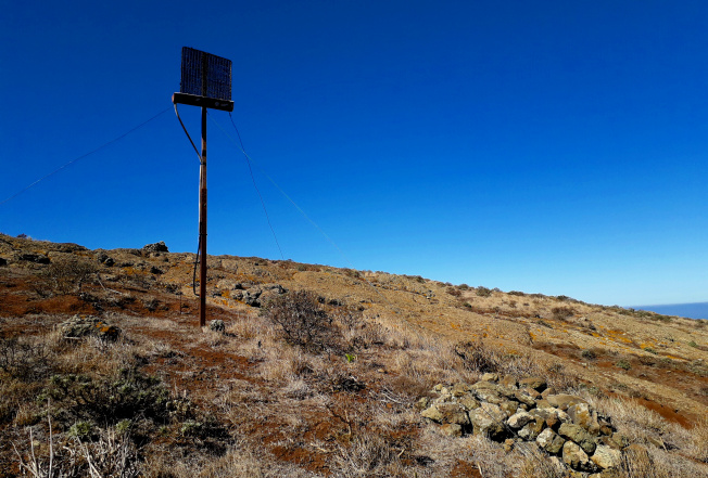 Der nächste Wegpunkt ist ebenfalls gut sichtbar. Ein Pfosten mit einem Netz, das als Nebelfänger dient. In diesem Netz fangen sich die Wassertröpfchen der Wolken. Über einen Schlauch wird das gewonnene Wasser zu einem Behälter geleitet, der unterhalb zwischen einigen Steinen versteckt ist. So haben die Ziegenhirten immer einen Notvorrat an Trinkwasser.