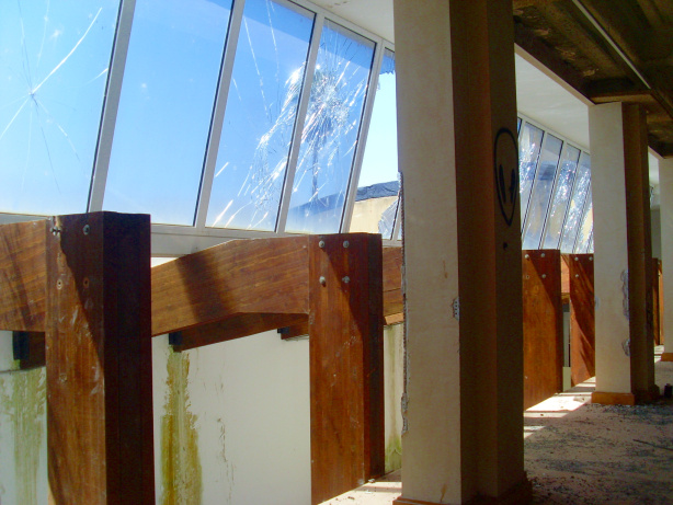 In der Folgezeit spielte sich nichts mehr ab. Genauer gesagt, es spielte sich das ab, was bei verlassenen und unbewachten Gebäuden leider immer passiert. Steine fliegen durch die Fensterscheiben, Türen werden aufgebrochen, Mobiliar wird zerstört und elektrische Anlagen werden geklaut. Das blaue Absperrband der Polizei bewirkt nicht viel. Irgendwann werden Fenster und Türen zugemauert und die weiteren Beschädigungen und Wandmalereien beschränken sich auf die Außenanlagen.