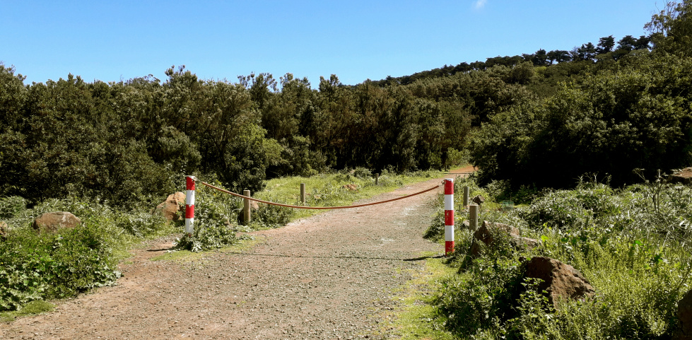 Dort öffnet sich der Blick auf die Bergkette des Anaga und über die weite Ebene von Las Mercedes und Jardina. Ein Stück weiter sieht man rechts oberhalb schon den Picknickplatz. Zum oberen Parkplatz kann man mit dem Auto fahren, der untere Parkplatz ist mit einer Schranke abgesperrt (B). An dieser Stelle bietet es sich an, zum Denkmal der Flugzeugkatastrophe zu gehen und um das Gebäude der Mesa Mota herum. Unter den Kiefern findet man bestimmt auch ein schattiges Plätzchen für eine Pause.