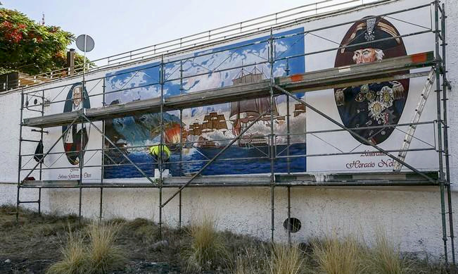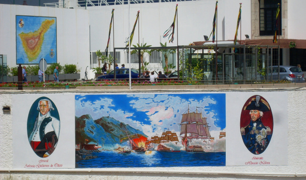 Ein anderes Gemälde von Gagamov kann man seit Juli 2016 an der Außenmauer des Real Club Nautico von Santa Cruz sehen, weiter nördlich des Hafens: Die legendäre Schlacht, die Admiral Nelson im Juli 1797 hier in Teneriffa gegen die Spanier verloren hatte.