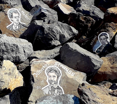 Von Mozart bis Paul McCartney, Beethoven oder Michael Jackson, Rimski-Kórsakov oder Johnny Cash, alles was Musikgeschichte geschrieben hat, ist hier vertreten. Ein Spaziergang entlang der Mauer, um den persönlichen Lieblingsmusiker zu entdecken, macht Spaß.