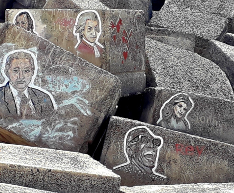 Es war im Jahr 2010, als der bulgarischen Künstler Stoyko Gagamov begonnen hatte, die würfelförmigen oder unregelmäßigen, riesigen Steinblöcke mit Gesichtern zu bemalen. Angefangen hat er allerdings mit dem Gesicht des Architekten Santiago Calatrava, der 1989 den Auftrag zur Konstruktion eines Konzerthauses erhielt, das 2003 eingeweiht wurde. Danach malte er den Sänger Luciano Pavarotti, und in den folgenden acht Monaten kamen 98 weitere Musikergesichter dazu. So nannte er sein Werk „Die 100 Gesichter“.