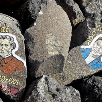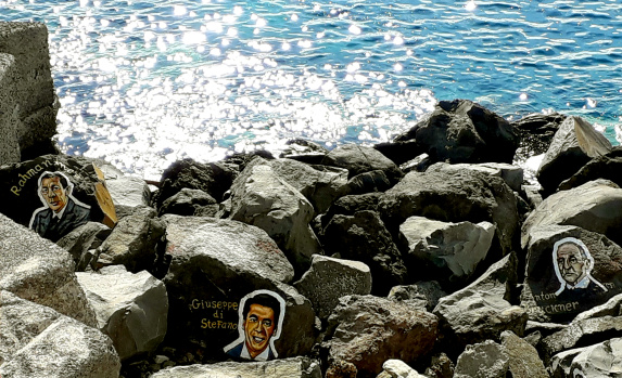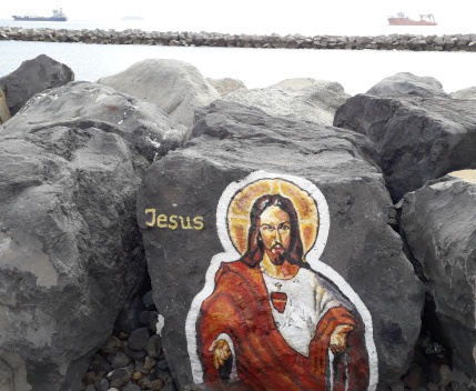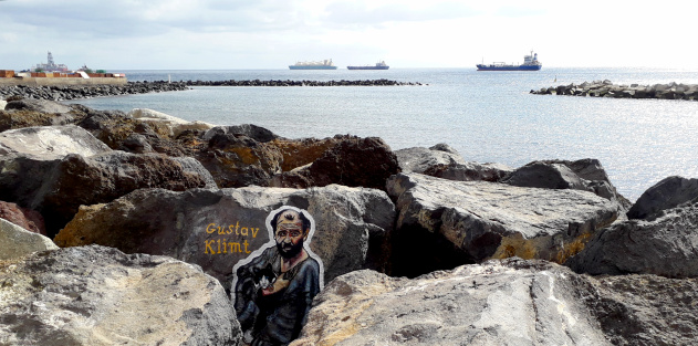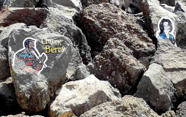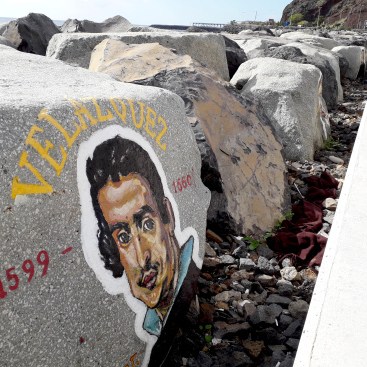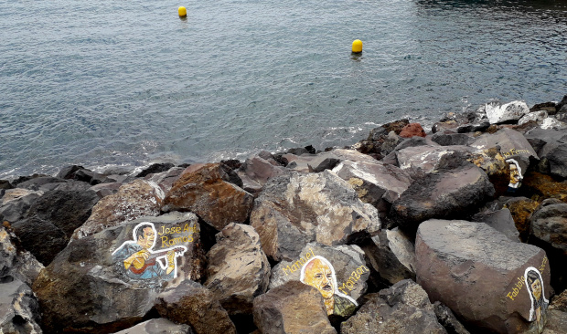 Noch mehr Werke des Malers, alle mit seinen kyrillischen Initialen C.Γ. versehen, kann man auf den Wellenbrechern vor San Andres, 10 km nördlich von Santa Cruz bewundern. Hier sind es keine Musiker, sondern berühmte Künstler, van Gogh, Michelangelo, Dalí, Cesar Manrique, … die Liste wäre lang.