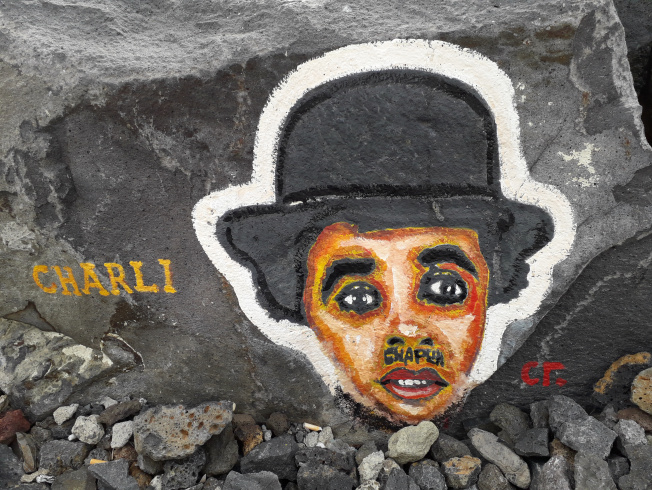 Charlie Chaplin war sicher auch ein Künstler, doch offenbar gehören auch Jesus und die Jungfrau del Carmen dazu.