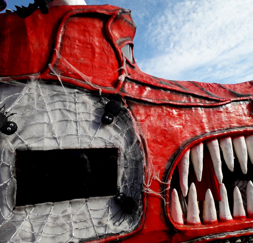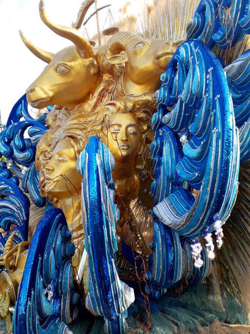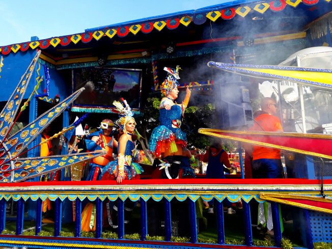 Prächtige „Carozas“ mit verrückten Aufbauten und Motiven begleiten den Zug.